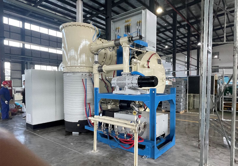4.當(dāng)爐內(nèi)真空度達(dá)到≤3Pa時,開始加熱,加熱至爐溫>360℃后,關(guān)主泵真空閥,關(guān)羅茨泵、機(jī)械泵,打開旁通泵-開旁通閥和慢充閥,系統(tǒng)自動進(jìn)行充氣和抽真空,保持爐內(nèi)壓力在一定范圍內(nèi),進(jìn)行惰性氣體置換。